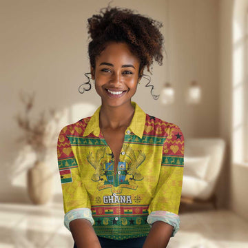 Afro Ghana Christmas Women Casual Shirt Coat Of Arms - Kente Pattern