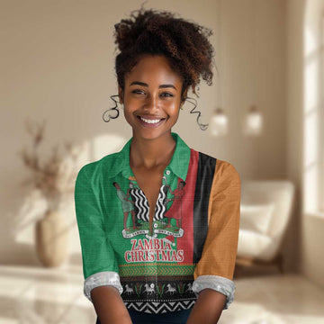 Afro Zambia Christmas Women Casual Shirt Coat Of Arms With Kente Pattern