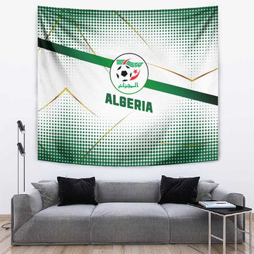 Algeria Soccer Tapestry with Desert Warriors Text and National Flag Design