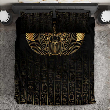 Ancient Egypt Bedding Set Black Gold Scarab LT7