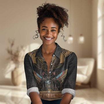 Ancient Egypt Scarab Beetle Women Casual Shirt Hieroglyphs Alphabet Pattern