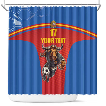 Custom Spain Football Go Champions Shower Curtain Sporty Style with Bull Mascot