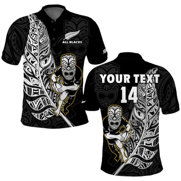Custom Text And Number New Zealand 2022 Rugby Polo Shirt All Black Silver Fern Maori Pattern Version Black LT14