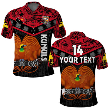 Custom Text And Number Papua New Guinea Rugby Polo Shirt PNG Kumuls Bird Of Paradise Black LT14