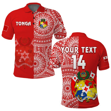 Custom Text And Number Tonga Polo Shirt Tongan Coat Of Arms Ngatu Pattern LT14