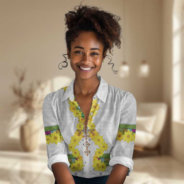 Enkutatash Ethiopia New Year Women Casual Shirt Tilet Pattern With Adey Abeba Flowers