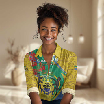 Gabon Independence Day Women Casual Shirt Gabonaise Flamboyant African Pattern