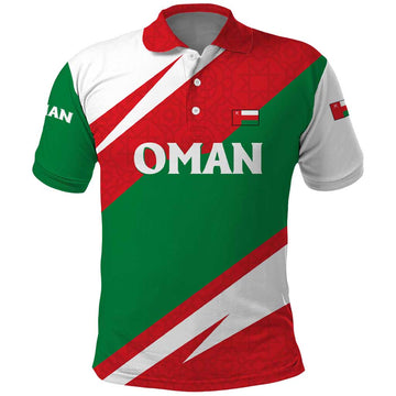 Oman Polo Shirt with National Flag Colors and Falcon Soaring Graphic Design