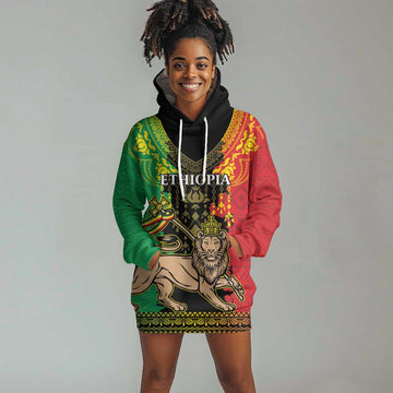Personalised Afro Ethiopia Hoodie Dress Lion Of Judah - African Pattern