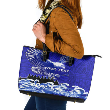Personalised American Samoa Fautasi Race Leather Tote Bag Eagle With Polynesian Pattern LT14