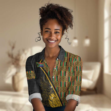 Personalised South African Heritage Day Women Casual Shirt Kente Ethnic Patterns Mix Protea LT7