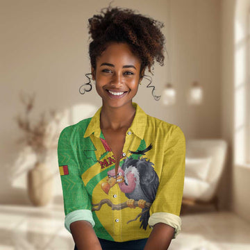 Personalized Afro Mali Vulture Women Casual Shirt Flag Map - Bogolan Pattern