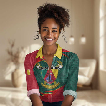 Personalized Cameroon Women Casual Shirt with Cameroun Coat of Arms and African Pattern