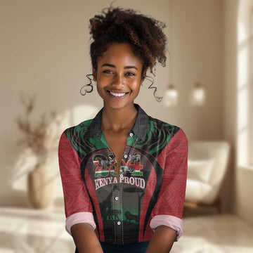 Proud Kenya 254 Women Casual Shirt Safari Animals - African Pattern