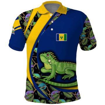 Saint Vincent and the Grenadines Iguana Polo Shirt with Tropical Leaf Pattern and National Flag